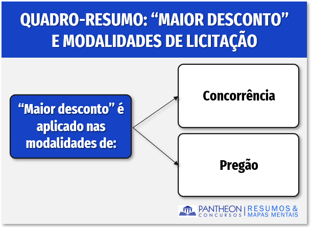 Da mesma forma que ocorre com o “menor preço”, no “maior desconto” poderá ser utilizado nas modalidades pregão e concorrência.