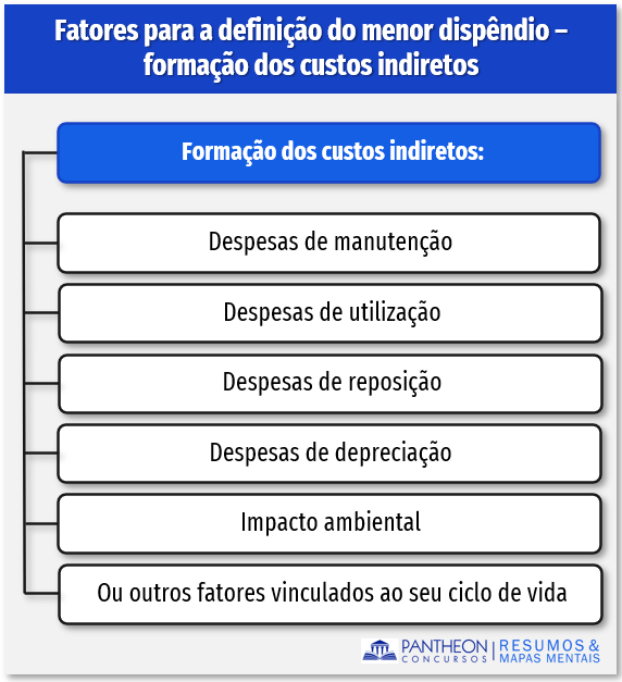 Dessa forma, na formação dos custos indiretos poderão ser consideradas, além de outras vinculados ao seu ciclo de vida, sempre que objetivamente mensuráveis, as seguintes despesas: (i) de manutenção, (ii) utilização, (iii) reposição, (iv) depreciação e (v) impacto ambiental do objeto licitado.