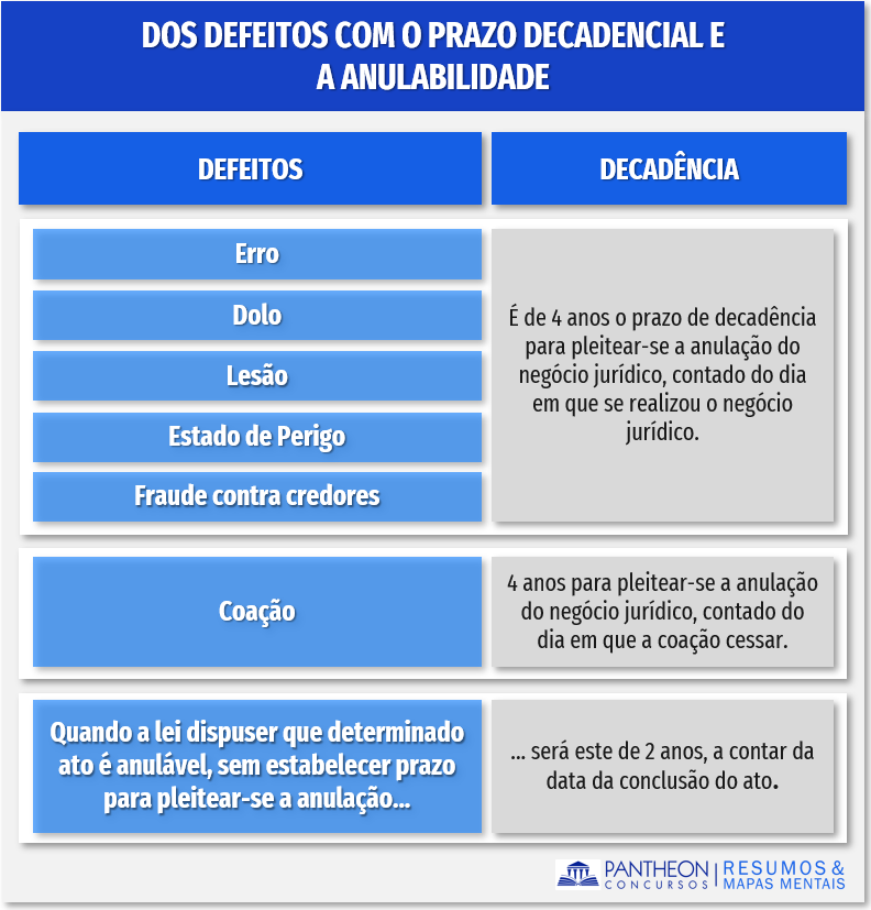 Quadro resumo: dos defeitos com o prazo decadencial e a anulabilidade