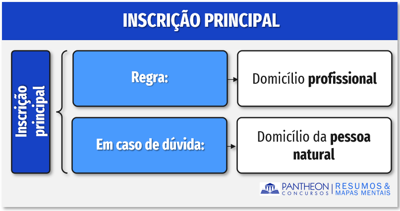 - Domicílio Profissional: considera-se domicílio profissional a sede principal da atividade de advocacia, prevalecendo, na dúvida, o domicílio da pessoa física do advogado (art. 10, § 1º, EAOAB);