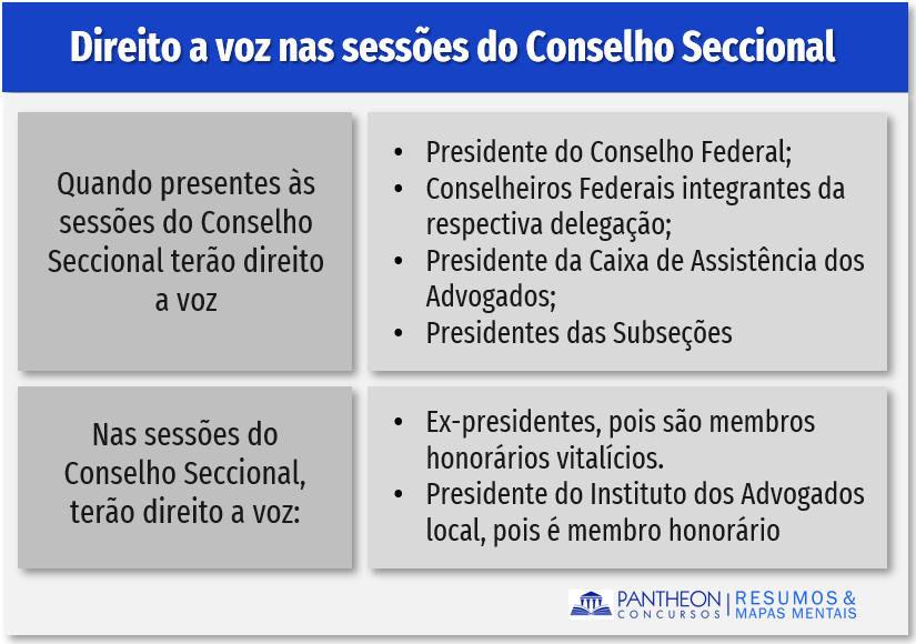 Nas sessões do Conselho Seccional, terão direito a voz: