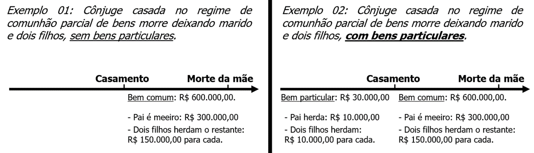 Bens particulares: aqueles adquiridos onerosamente antes da união estável ou do casamento, ou, no caso do regime de separação total, durante o casamento. As doações e heranças são considerados bens particulares, exceto quando o casamento tiver sido realizado no regime de comunhão universal de bens.