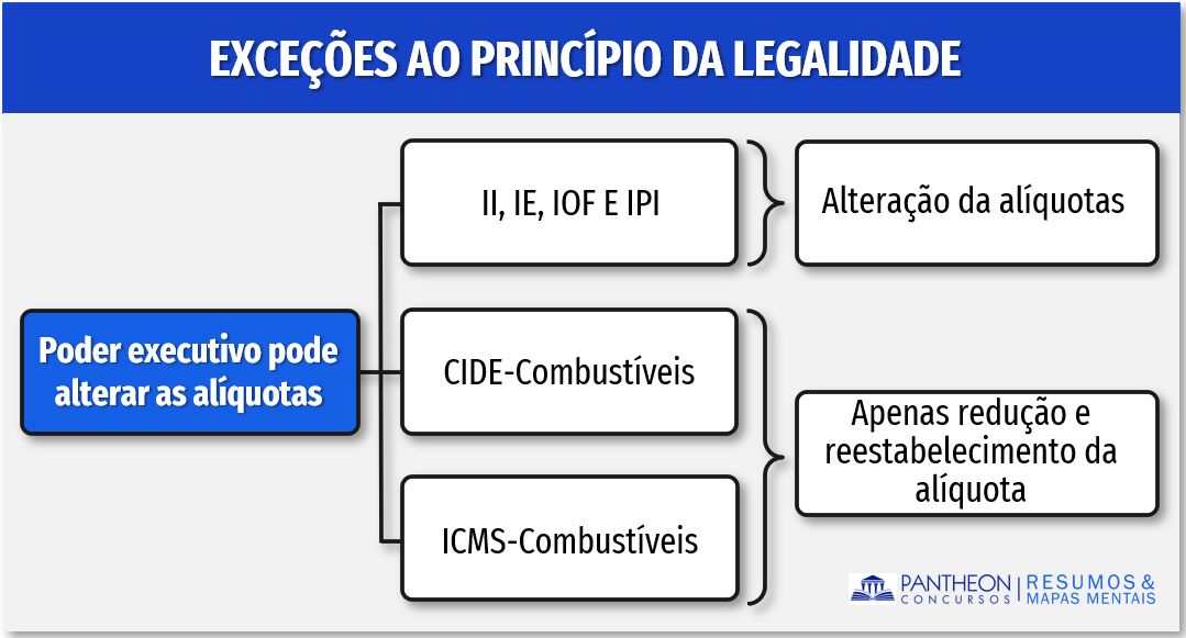 De forma gráfica, segue um esqueminha também contendo as exceções ao Princípio da Legalidade Tributária, para facilitar na revisão: