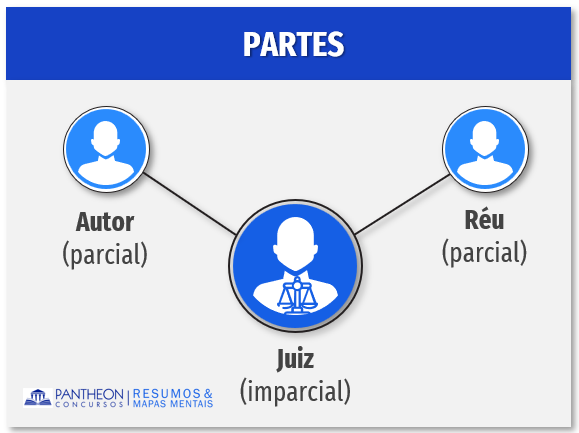Importante: todas as pessoas que participam do processo (juiz, autor, réu, servidores da justiça, Ministério Público, advogado, peritos, intérpretes, testemunhas etc.) são sujeitos do processo, mas apenas o demandante (autor) e o demandado (réu), polos ativo e passivo, respectivamente, recebem a denominação de partes do processo. O advogado, como veremos a seguir, é o representante das partes.