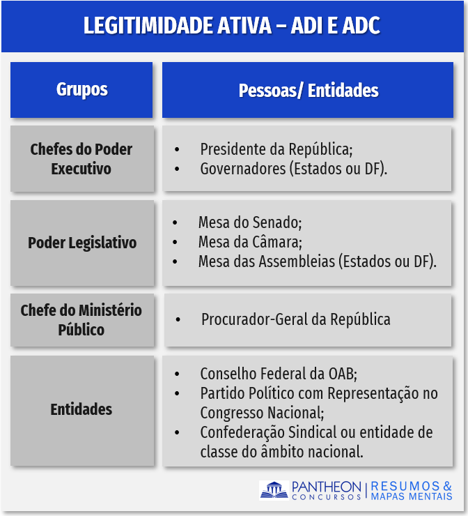Para auxiliar a memorização dividimos os legitimados em quatro grupos: