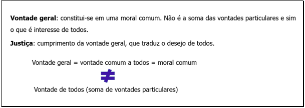 - Vontade geral = vontade comum a todos = moral comum ≠ vontade de todos (soma de vontades particulares).