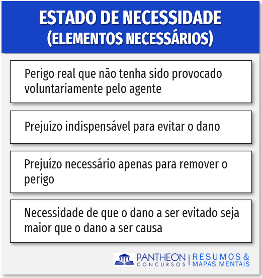 Vamos apresentar um resumo dos elementos necessários para se caracterizar a figura do estado de necessidade: