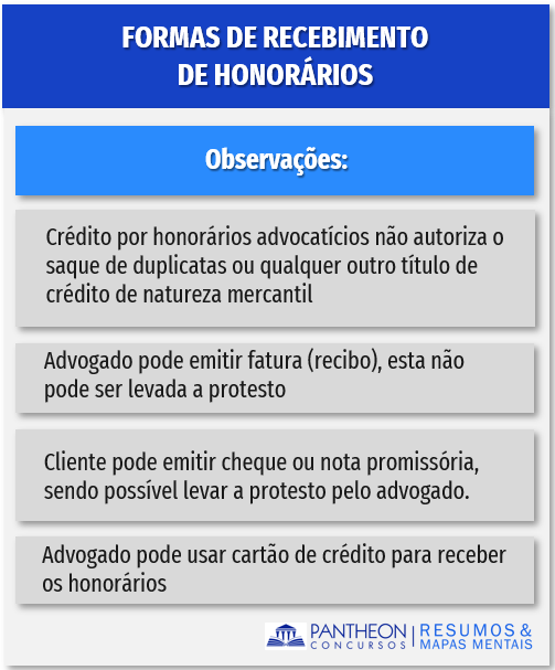 Da leitura dos dispositivos conclui-se que: É admitida a compensação de créditos, pelo advogado, de importâncias devidas ao cliente, se houver autorização para tanto no contrato de prestação de serviços. Também é permitido o emprego de sistema de cartões de crédito para recebimento de honorários, mediante credenciamento junto a operadoras de tal ramo.