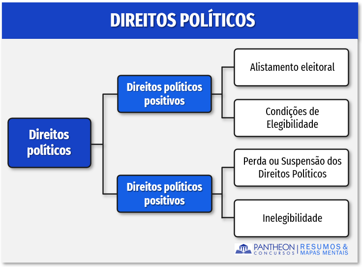 A seguir vamos estudar os principais pontos relativos aos direitos políticos, como metodologia optamos em organizar nosso tópico da seguinte forma: (i) direitos políticos positivos - alistabilidade (capacidade eleitoral ativa) e condições de elegibilidade (capacidade eleitoral passiva); (ii) direitos políticos negativos – inelegibilidades e perda ou suspensão dos direitos políticos. Iniciaremos com as hipóteses de perda ou suspensão dos direitos políticos.