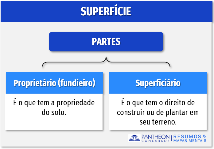 Na superfície o proprietário (fundieiro) concede a terceiro (superficiário) o direito de construir ou de plantar em seu terreno, por tempo determinado, mediante escritura pública devidamente registrada no Cartório de Registro de Imóveis (CC, art. 1.369).