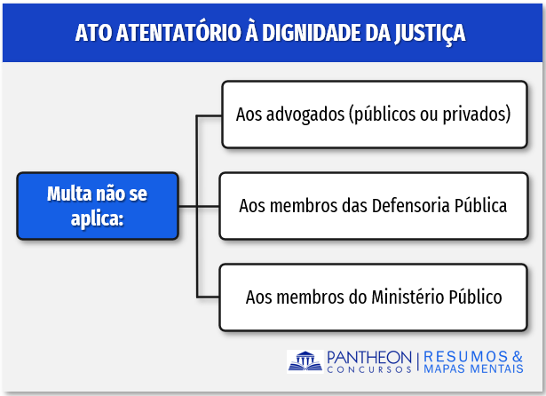 A multa por ato atentatório à dignidade não se aplica aos advogados, públicos ou privados, e aos membros da Defensoria Pública e do Ministério Público, devendo eventual responsabilidade disciplinar ser apurada pelo respectivo órgão de classe ou corregedoria, ao qual o juiz oficiará (art. 77, § 6º, do CPC).