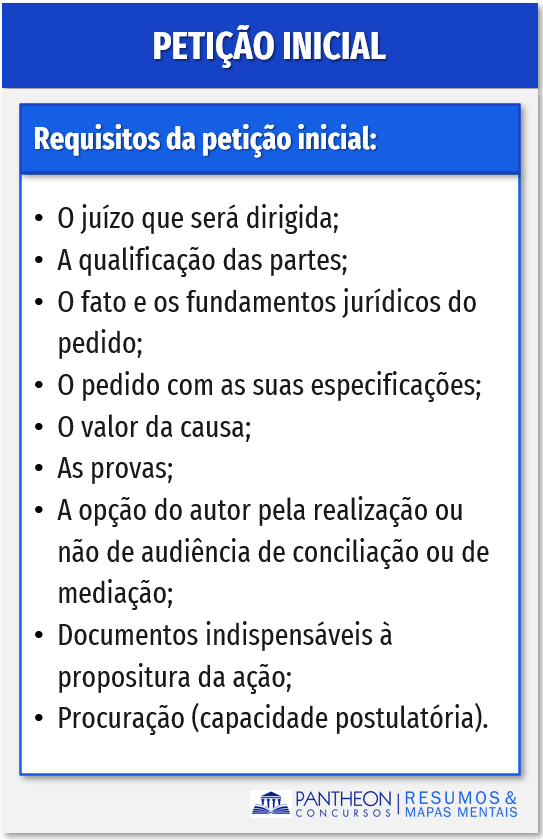 Para que seja aceita, a petição inicial deve atender os requisitos estabelecidos pelo art. 319 do CPC: