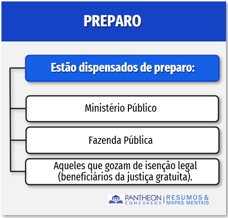 Como veremos no Capítulo seguinte, alguns recursos, daqueles elencados pelo CPC (art. 994) estão dispensados do preparo, abaixo os reunimos de forma sistematizada para revisão posterior.