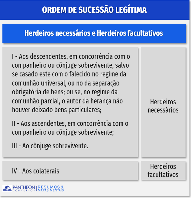 Como já vimos, são herdeiros necessários os descendentes, os ascendentes, o cônjuge e o companheiro (CC, art. 1.845 e RE 878.694/MG, STF). Pertence aos herdeiros necessários, de pleno direito, a metade dos bens da herança, constituindo a legítima. (CC, art. 1.846).