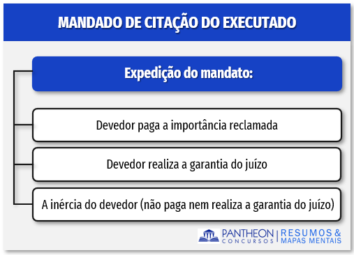 Da expedição do mandato poderemos ter três situações: devedor paga a importância reclamada; devedor realiza a garantia do juízo; a inércia do devedor (não paga nem realiza a garantia do juízo).