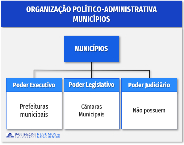 A Constituição Federal de 1988 elevou os municípios à condição de entes federados. Portanto, os municípios, tal como os estados, possuem autonomia e têm capacidade de: auto-organização e autolegislação, autogoverno; e autoadministração. Entretanto, os municípios não possuem Poder Judiciário.