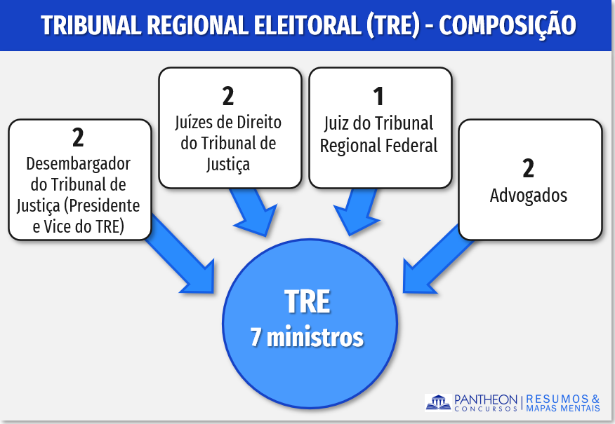 Assim como fizemos na composição do TSE, segue abaixo para melhor memorização um esquema gráfico da composição do TRE: