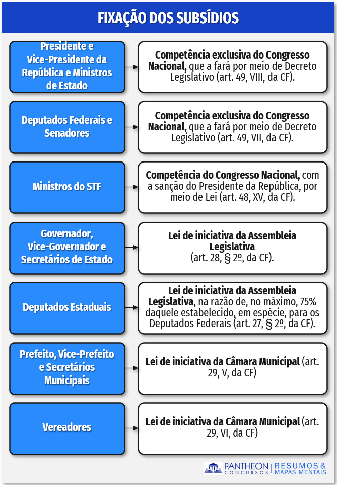 Pessoal, para encerramos o tema “atribuições” vamos sintetizar a fixação de subsídios: