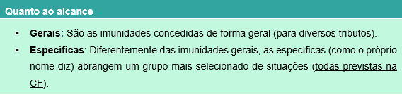 Imunidades tributárias são limitações estabelecidas pelo legislador constituinte ao poder de tributar, ou seja, a CF estabelece situações em que há uma verdadeira incompetência tributária, não há o que se falar em incidência tributária tampouco em fato gerador.