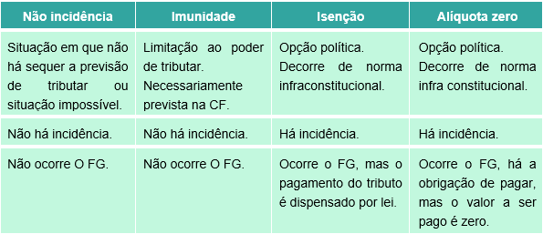 Não incidência x Imunidades tributárias x isenção x alíquota zero