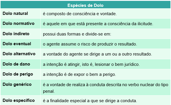 - Dolo eventual: nessa espécie de dolo o agente prevê a ocorrência do resultado e assume o risco de produzi-lo.