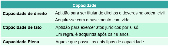 Importante: aqueles que gozam da capacidade de direito e da capacidade de fato tem a capacidade plena.