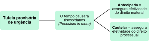 - Tutela provisória de urgência de caráter incidental: requerida no curso do processo.